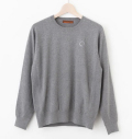 コットンとカシミアのスウェット風クルーネックニットです。 サイドはリブ編みにしてストレッチ機能がヴィジュアルで見えるように工夫し背中には落ち着いた刺繍糸カラーでブランドロゴを入れました。カシミア混の柔らかい風合いがパーフェクトタンらしい、〈チームウエア〉をイメージしたクルーネックニットです。